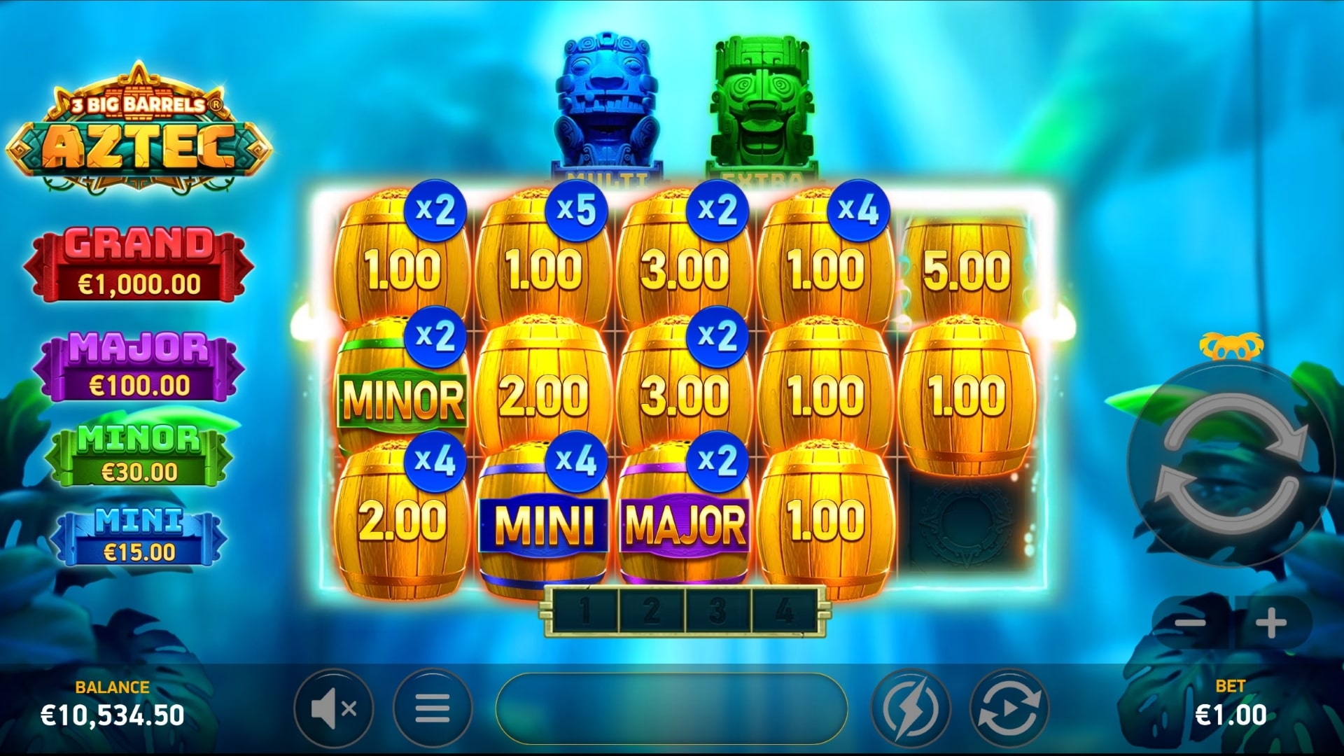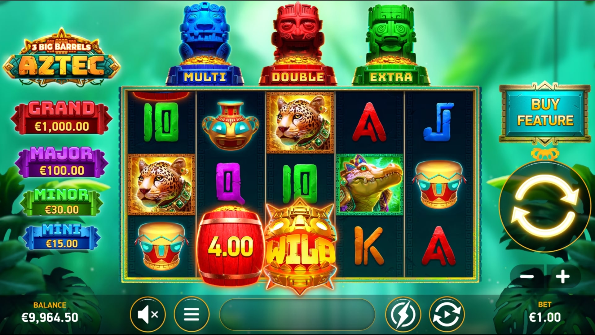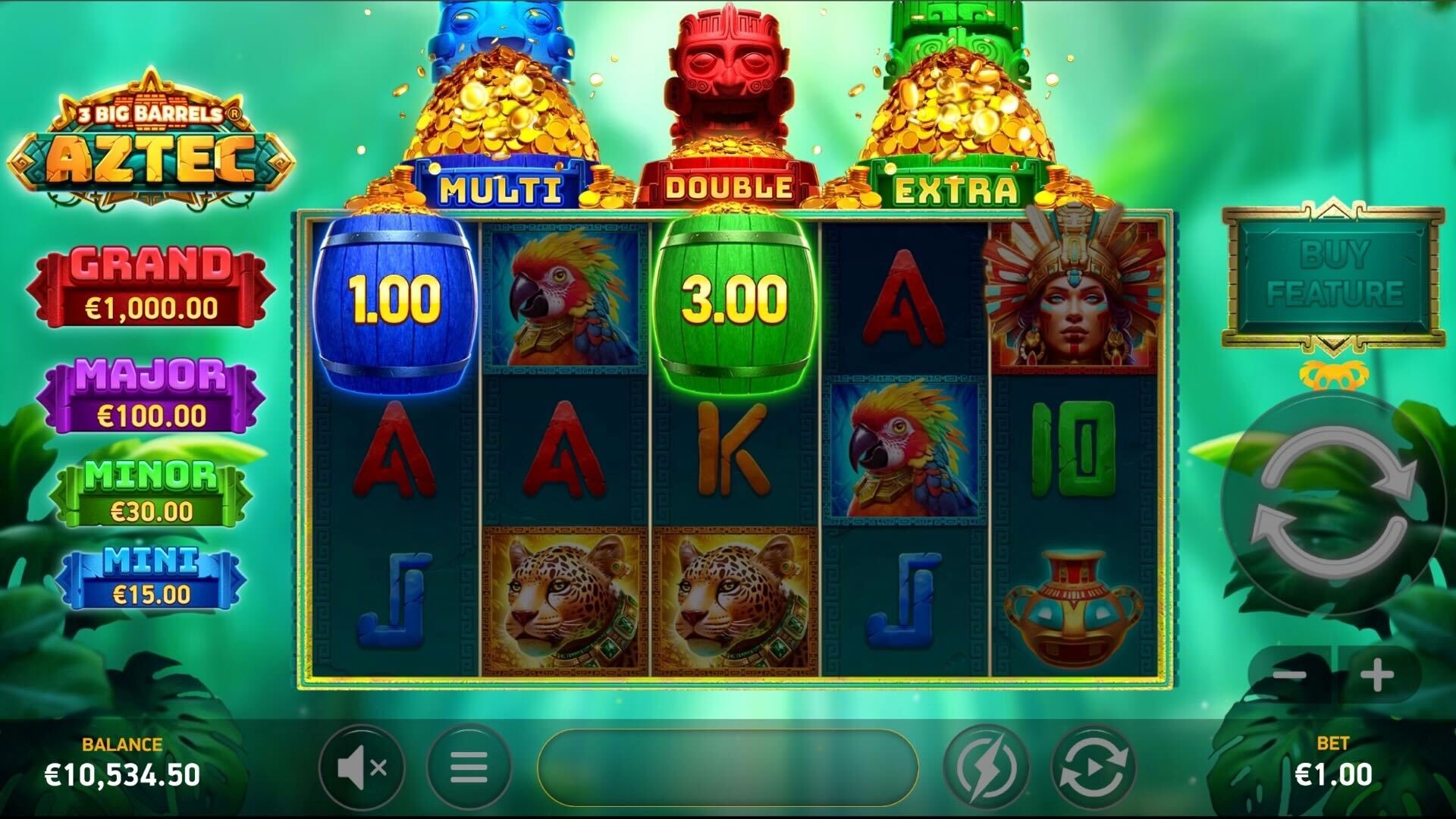 Unlock Ancient Riches in 3 Big Barrels® Aztec!