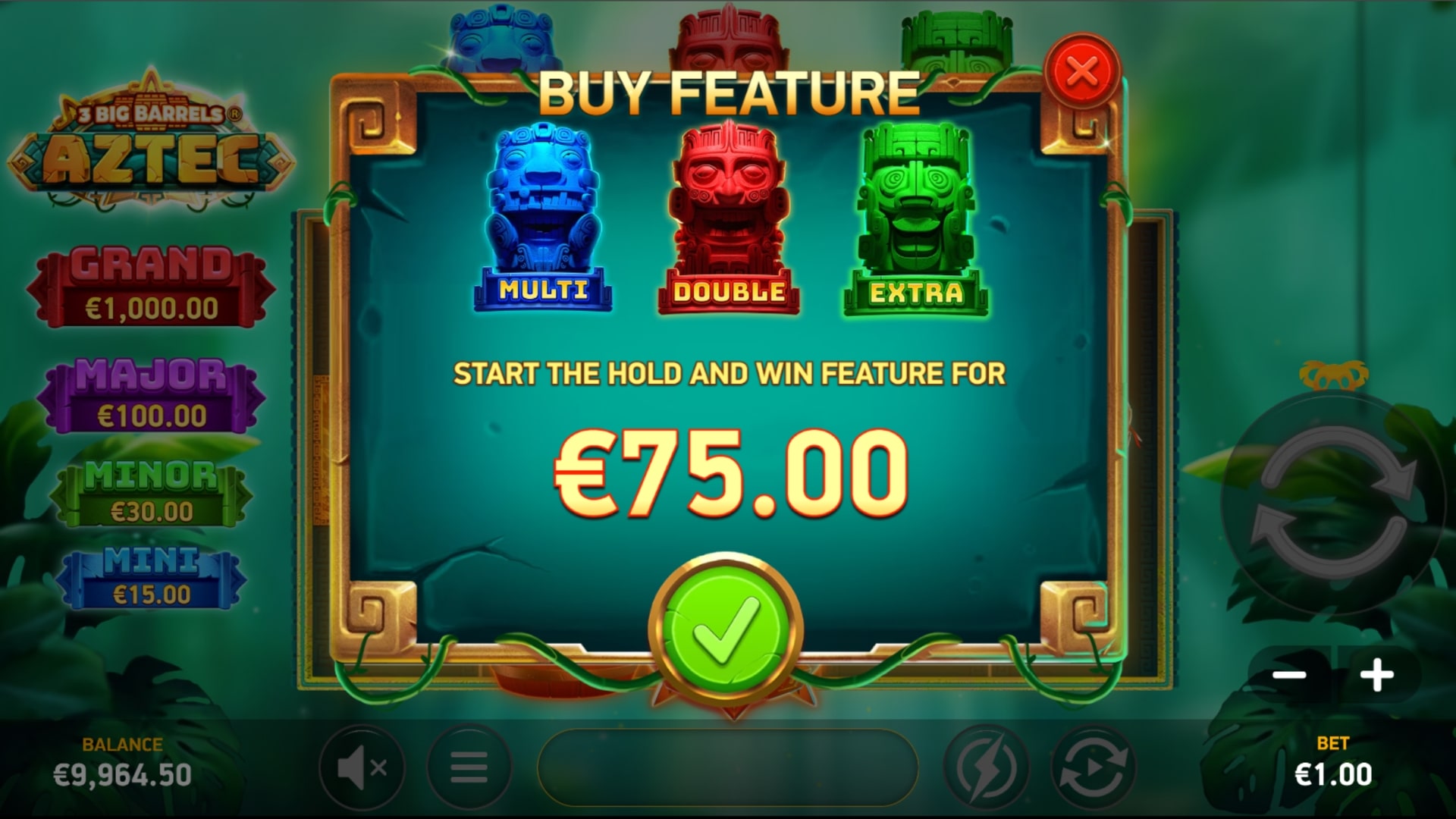 Step into the lush heart of the Aztec empire where hidden treasures await and barrels brim with golden power. 3 Big Barrels® Aztec is a thrilling slot adventure that blends ancient mystery with explosive rewards!
