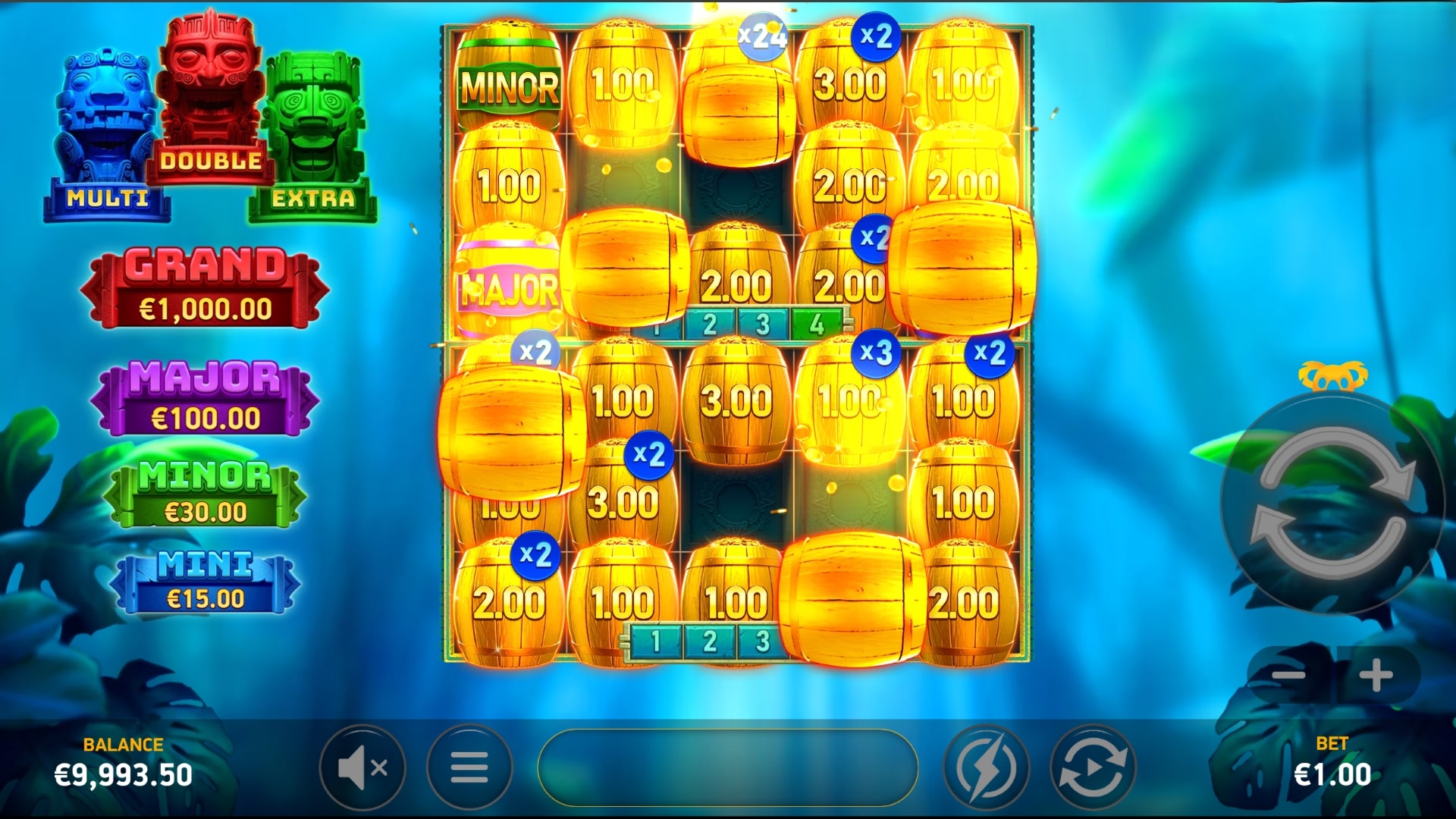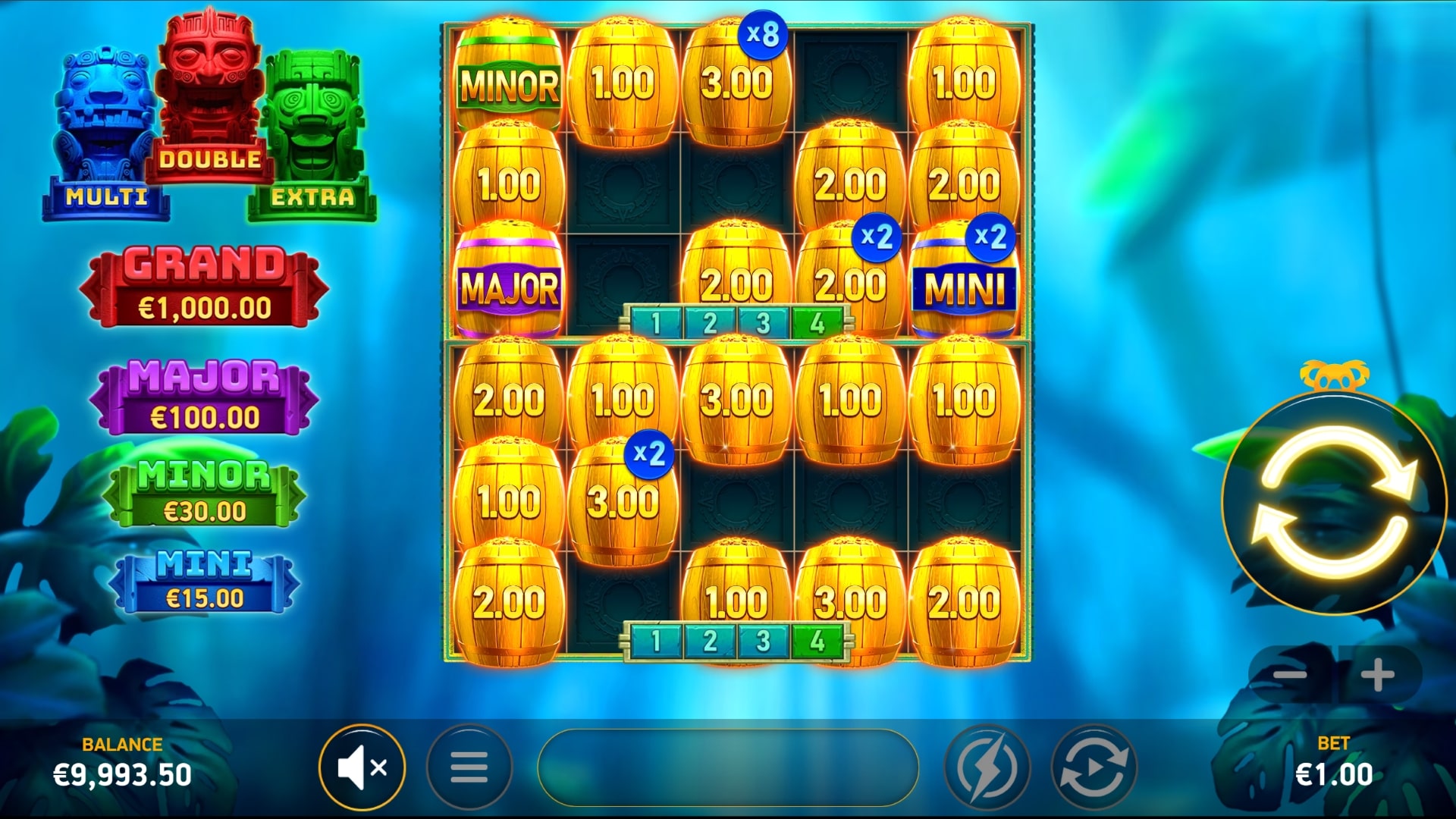 Trigger the Hold and Win by landing Blue, Green, or Red Barrels to fill their sacred meters. Each one can unleash a powerful bonus: